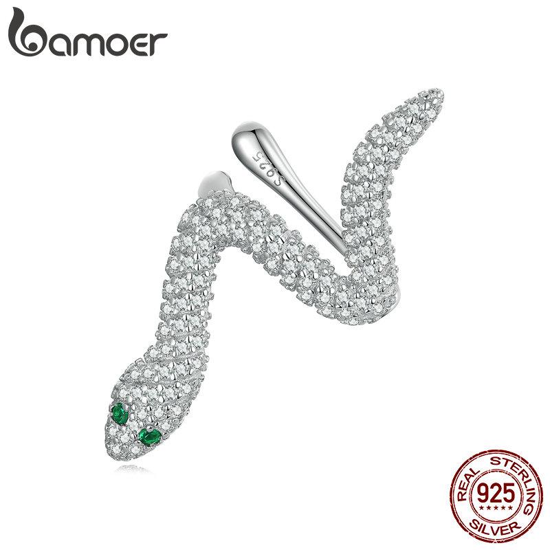 BAMOER 1PC 925 стерлингового серебра Бриллиант Змея Ушная манжета для женщин Тонкие ювелирные изделия Женщины Statemnt Серьги 3D Змея Ушной зажим