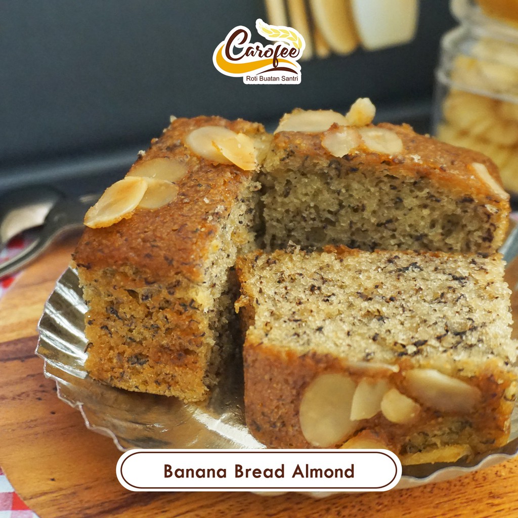 Banana Bread Carofee ada roti yang berbentuk seperti bolu. Roti dan pisang yang ada didalamnya ditambah dengan berbagai pilihan topping tambahan diatasnya menambah kenikmatan Banana Bread dari Carofee dan pastinya bikin ketagihan untuk menikmatinya lagi dan lagi.