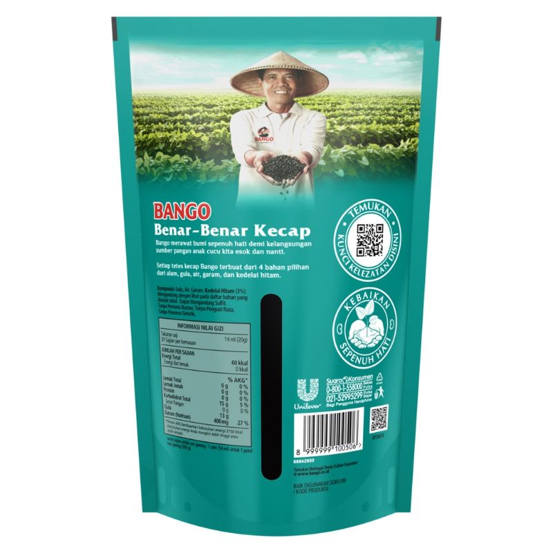 • Bango Kecap Manis yang terbuat hanya dari 4 bahan alami yang berkualitas tinggi yakni kedelai hitam Mallika, gula, garam, dan air.