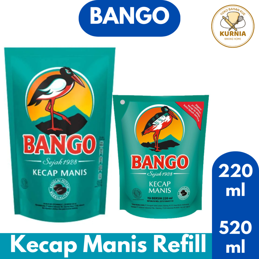 KECAP MANIS BANGO merupakan kecap manis dalam bentuk kemasan (isi ulang) ini mengutamakan kemurnian, yang terbuat dari kedelai hitam berkualitas tinggi. Bango terbuat dari bahan – bahan terpilih yaitu : kacang kedelai hitam, gula kelapa, garam dan air tanpa adanya bahan pengawet atau bahan kimia tambahan.