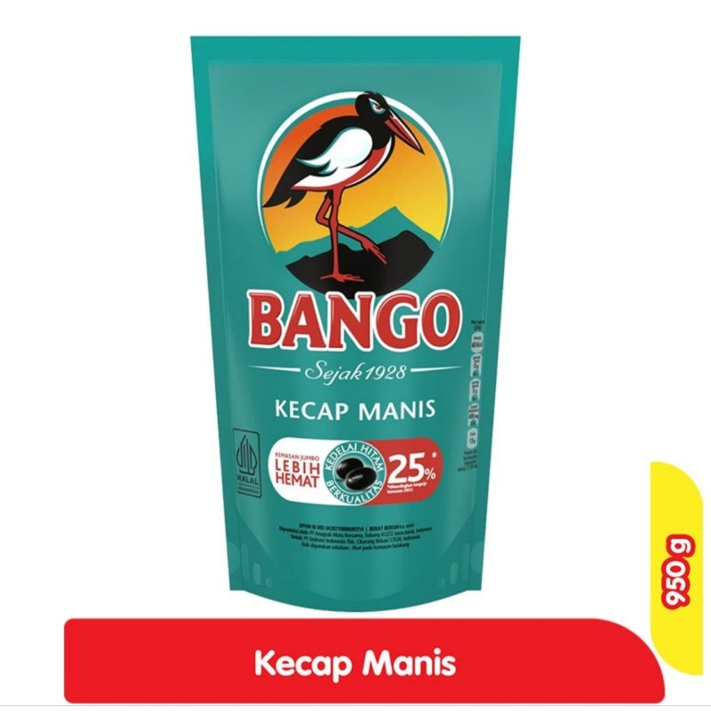 BANGO Kecap Manis Refill 950 g merupakan produk kecap manis yang diracik dari kedelai hitam malika unggulan yang difermentasi beberapa bulan secara cermat. Melalui proses pengolahan khusus agar berpadu sempurna dengan bahan-bahan lain yang menghasilkan cita rasa unik. Membuat Kecap BANGO berbeda dari kecap-kecap lain yang menggunakan kedelai kuning. Hadir dalam kemasan pouch/refill besar ukuran 950 g.