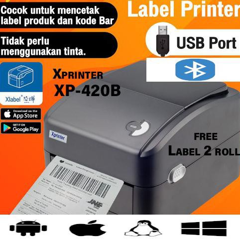 BARCODE PRINTER ALAMAT XPRINTER XP-420UB SIZE A6 FREE 2 ROLL LABEL 4