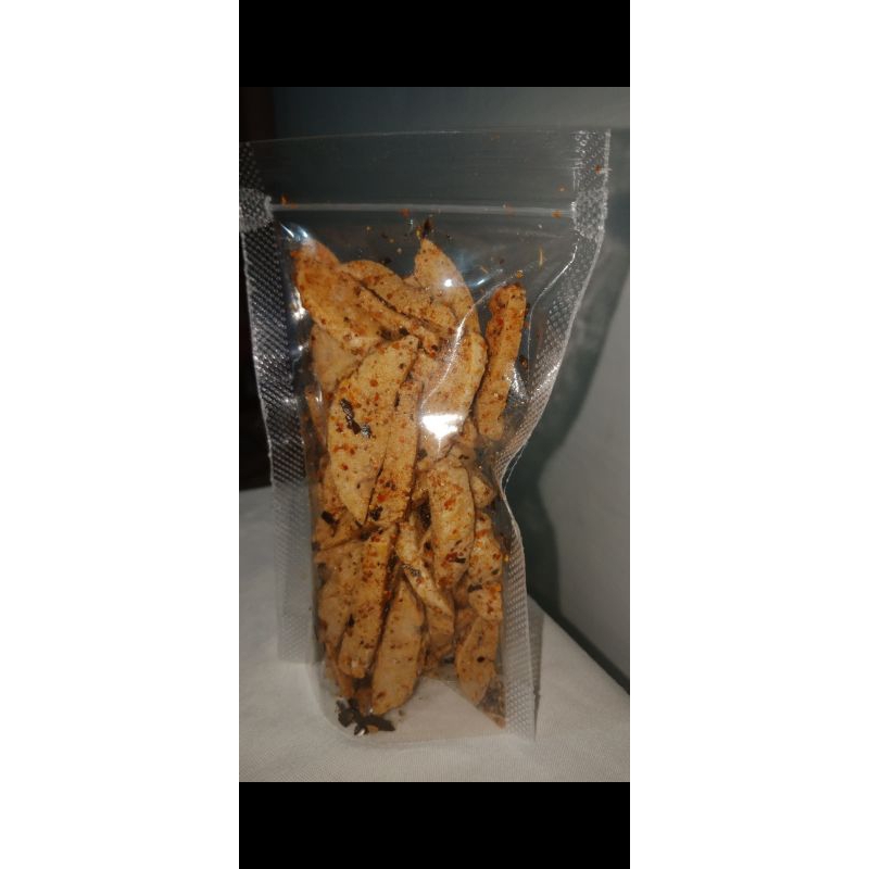 Kripik bawang yang terbuat dari bakso yang dipotong tipis dan ditambahkan dengan daun jeruk yang membuat rasanya sangat nikmat untuk menjadi cemilan sehari-hari dirumah.