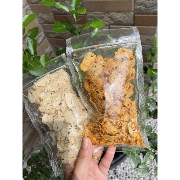 Basreng berbentuk gepeng yg renyah, ada 2 varian, pedas dan original