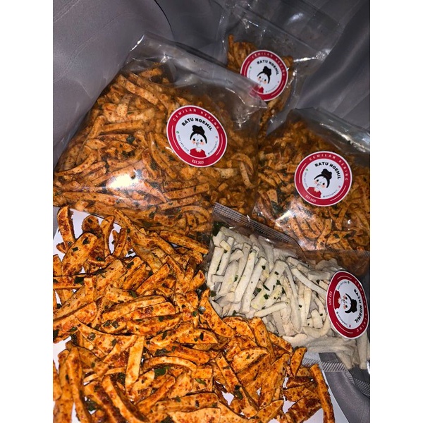 Basreng yang super renyah + gurih dengan varian pedas dan original