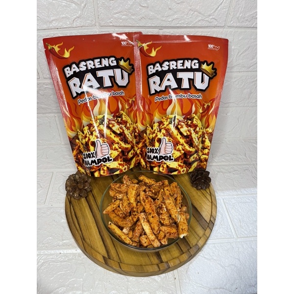 basreng ratu terbuat dari bakso ikan pilihan dan bumbu yg basah yg full pedas.rasa gurih dan renyah bikin nagih.