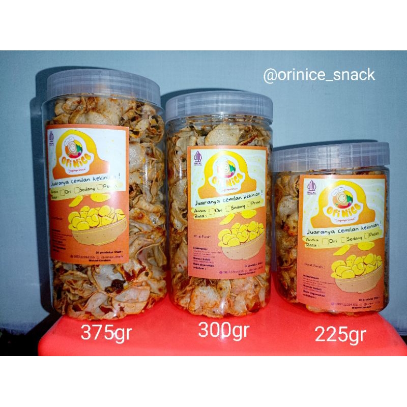 Basreng orinice snack tersedia berbagai varian dan ukuran.
