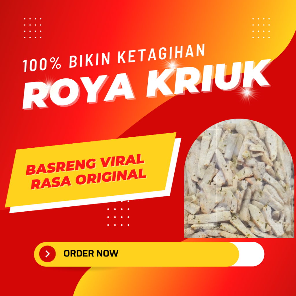 Dengan kemasan praktis, Basreng Roya Kriuk Rasa Original cocok menjadi teman setia di berbagai momen, mulai dari santai di rumah, nonton film, hingga kumpul bersama teman-teman. Sajikan kelezatan tiada tara di setiap kesempatan dengan Basreng Roya Kriuk Rasa Original yang memanjakan lidah dan selalu meninggalkan kenangan lezat.