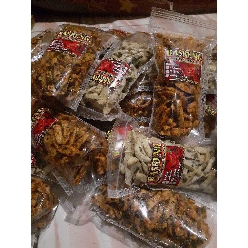 pedas gurih renyah aroma daun jeruk dengan empat varian level : pedas, sedang, sangat pedas, dan original..
