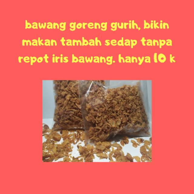 bawang goreng asli sedap dan praktis tanpa repot iris bawang.. yuuukk dibeli.. coba dulu dan rasakan keaslian bawang goreng gurih ini