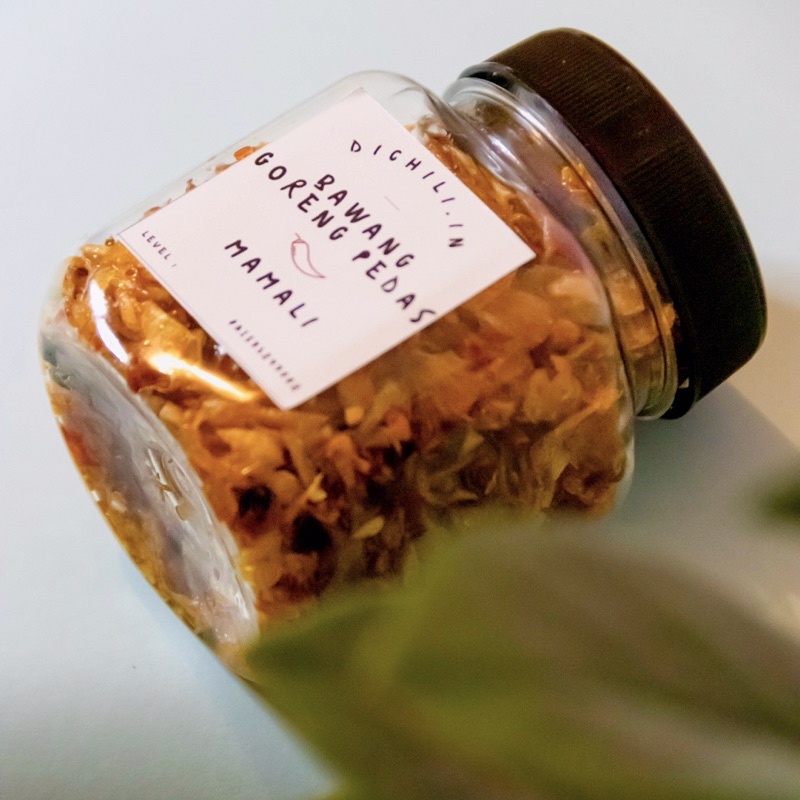 terbuat dari bawang merah pilihan, cabai merah segar, cabai merah kriting segar, daun jeruk, dan bumbu pilihan ala mamali.