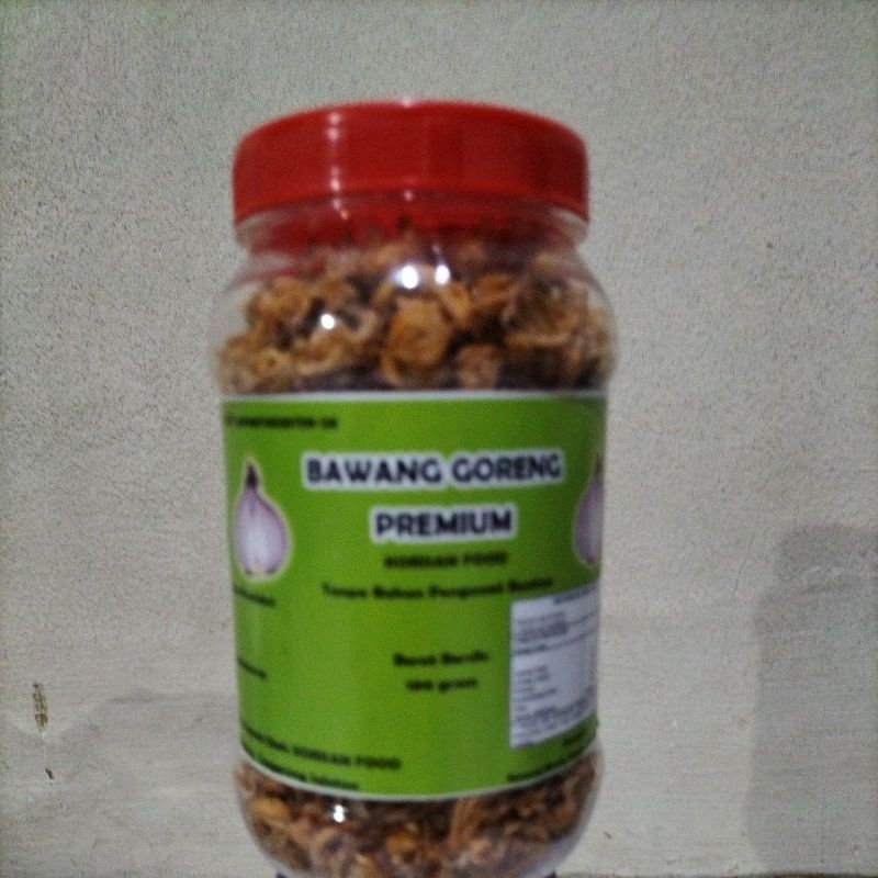 terbuat dari bawang goreng pilihan gurih, renyah, asli, tidak berminyak