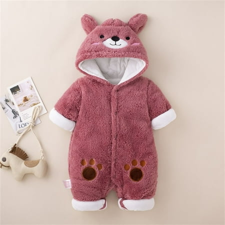 ZHUASHUM Jacket For Toddler Baby Girl Boy Cute Animal Long Sleeves Cartoon Ears Hooded Button Romper Warm Jumpsuit Outfits Kid Coats