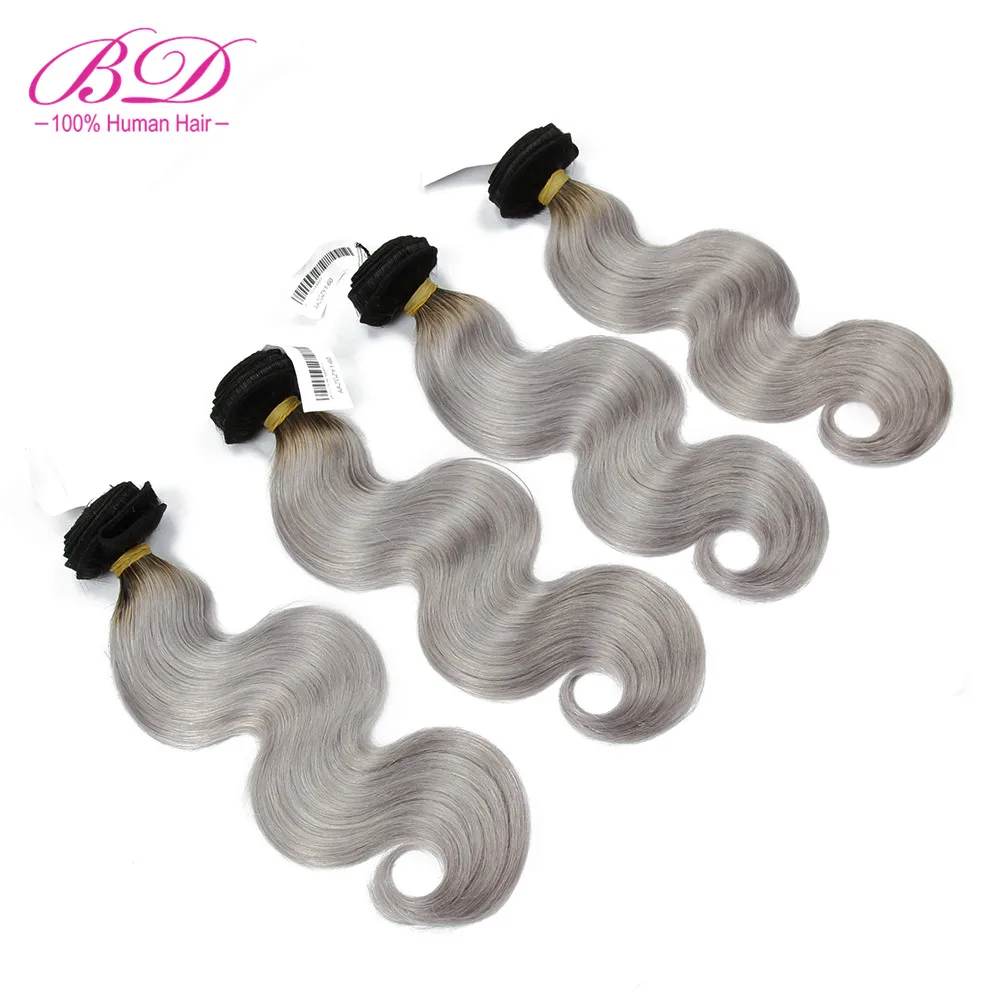 BD волосы 1B/серая объемная волна человеческие волосы пучки 3 шт./лот темно-корень Омбре серые волосы переплетения перуанские Remy волосы для на...