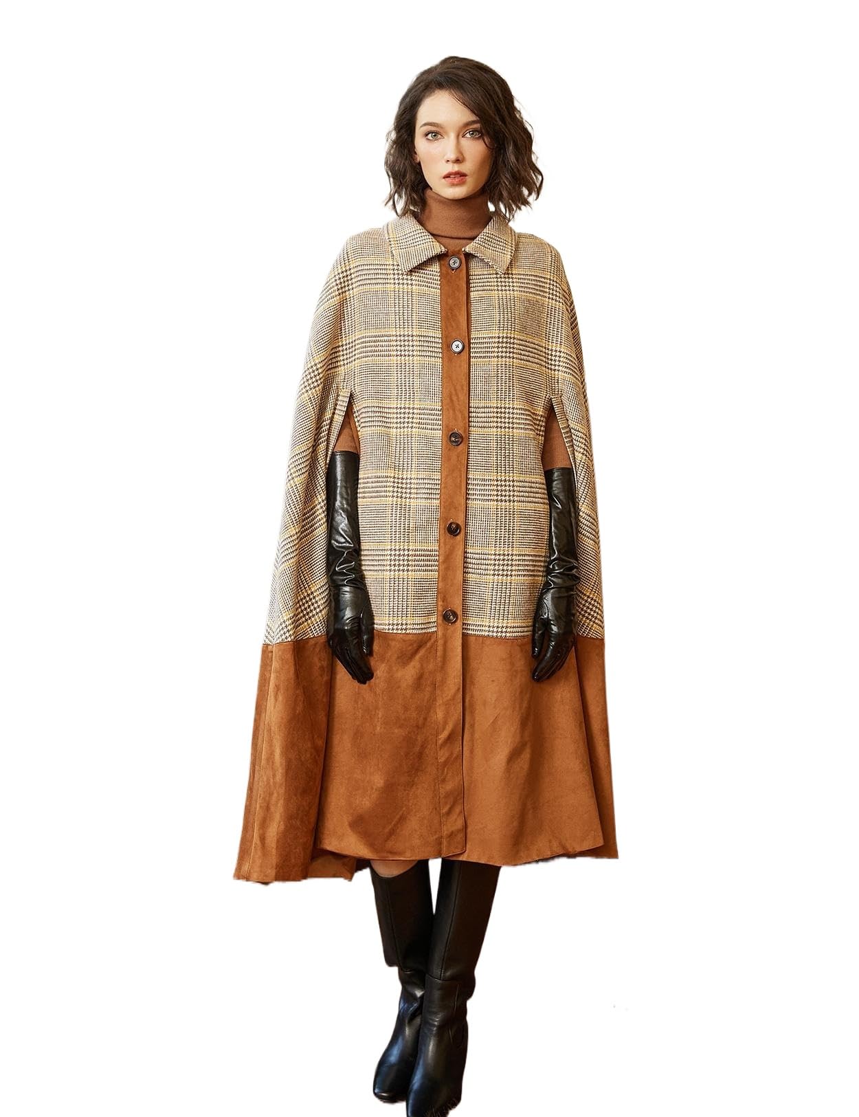 BEAUTELICATE Длинное пончо-накидка из смесовой шерсти для проверки размера M Женское пальто, накидка, плащ, тепло, элегантное, без карманов, с узором, осень/зима,