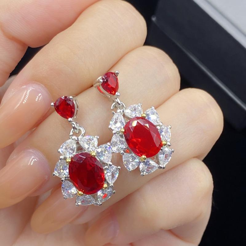 BELLA BOX Высококлассная имитация голубиного яйца Красное Полностью бриллиантовое Красное в сети Живое Раздельное по цвету Открытое кольцо Женский кулон Серьги-капли Набор No.4 красный