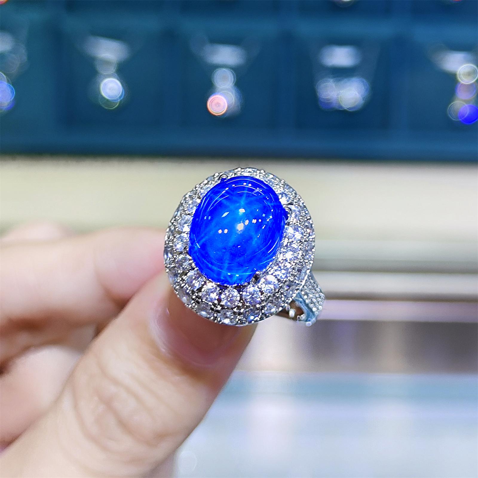 BELLA BOX Роскошное Высококлассное Кольцо Открытое из Синего Мерцающего Кристалла в Форме Голубиного Яйца с Заостренным Концом, Подходящее для Повседневной Вечерней Модной Бижутерии для Женщин Adjustable Opening синий