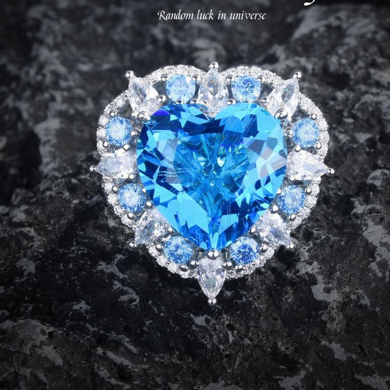 BELLA BOX Роскошное ожерелье с подвеской «Любовь» из тяжелого промышленного топаза, кольцо в форме сердца в форме сердца, серьги в форме синего моря, красочный набор сокровищ No.2 синий