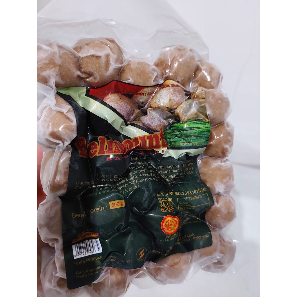 Bakso Sapi Halus Belmont Beku, rasa gurih, kenyal, tekstur serat dan aroma daging yang kuat Isi kemasan 50 bakso, berat total 500 gram.