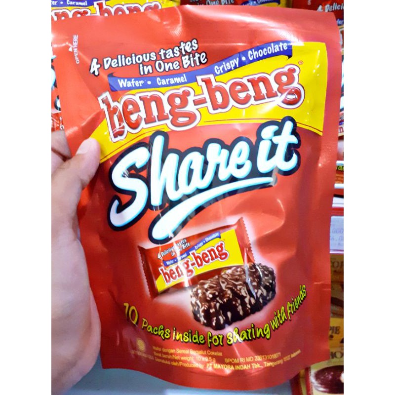 Beng beng share it adalah wafer coklat dengan crispy rice yang berbalut dengan susu dan coklat yang tebal. Lapisan cream yang tebal membuat mood menjadi lwbih baik
