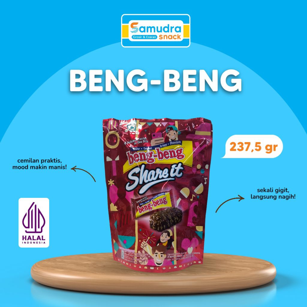BENG - BENG Share it merupakan wafer cokelat dengan rice crispy yang berbalut cokelat susu yang nikmat. Lapisan cream yang lezat dan lembut