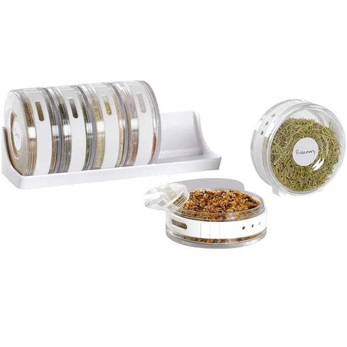 BERMUTU Rak Bumbu Dapur Bulat Isi 6pcs Cylindra Spice Rack - Putih