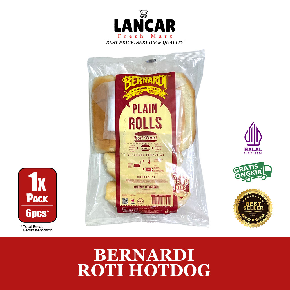 Bernardi Roti Hotdog adalah roti tawar berbentuk lonjong khusus untuk isian hotdog. Roti ini memiliki tekstur lembut dan padat, cocok untuk diisi sosis, sayuran, dan berbagai saus. Diproduksi oleh Bernardi, brand yang dikenal dalam industri makanan beku dan olahan, produk ini hadir dalam kemasan praktis isi 6 pcs.