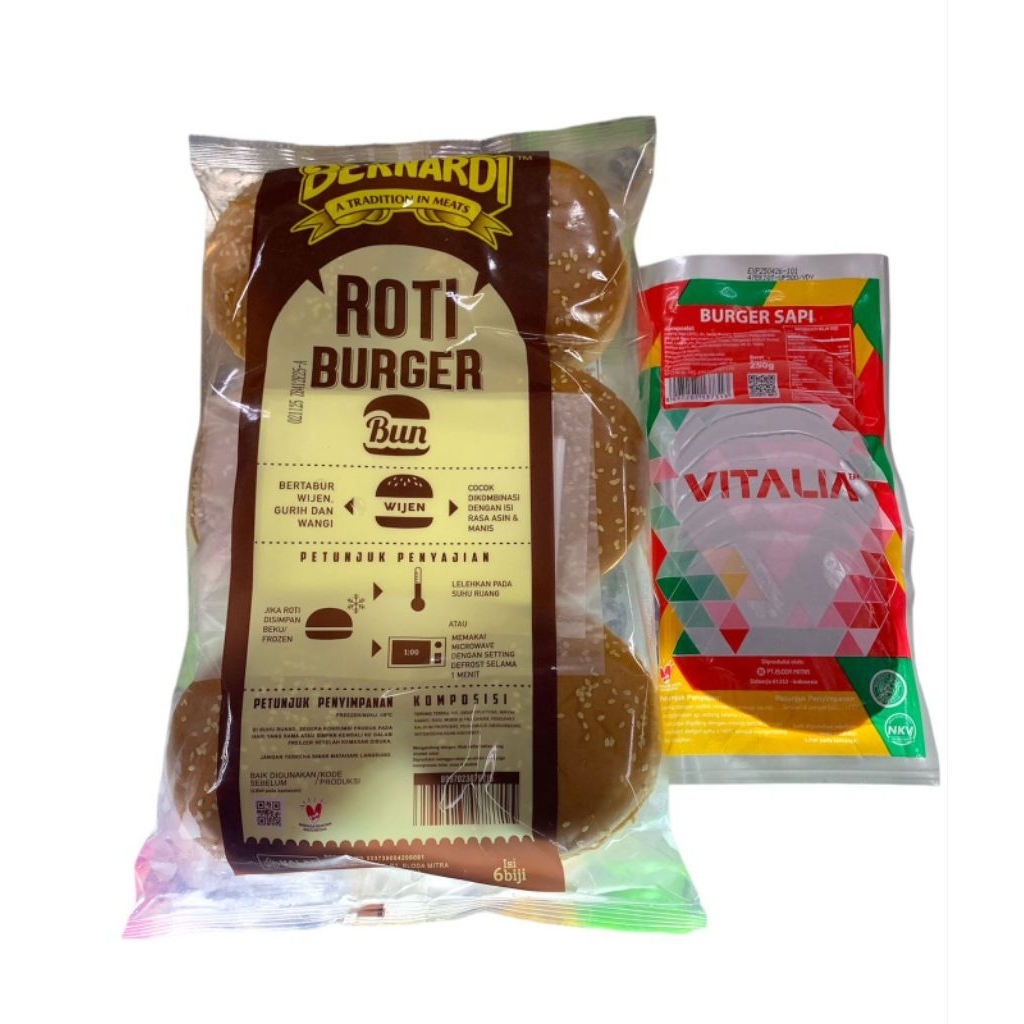 BERNARDI PAKETAN ROTI BURGER BUN & BURGER DAGING SAPI ISI 6 PCS