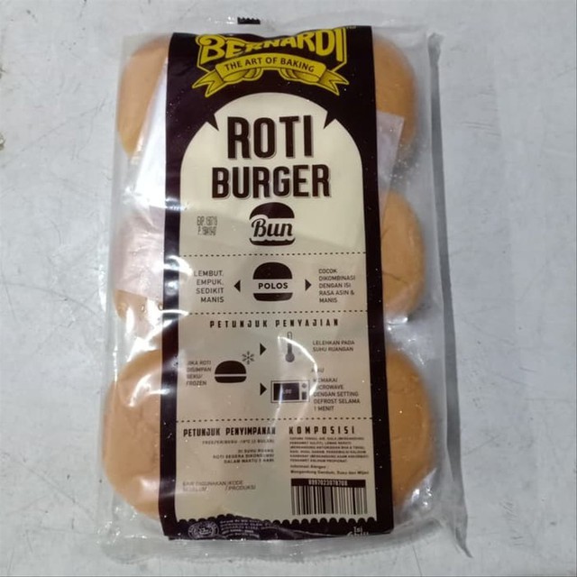 Roti burger bun polos isi 6 biji (@50gr) dengan tekstur lembut, empuk dan sedikit manis.