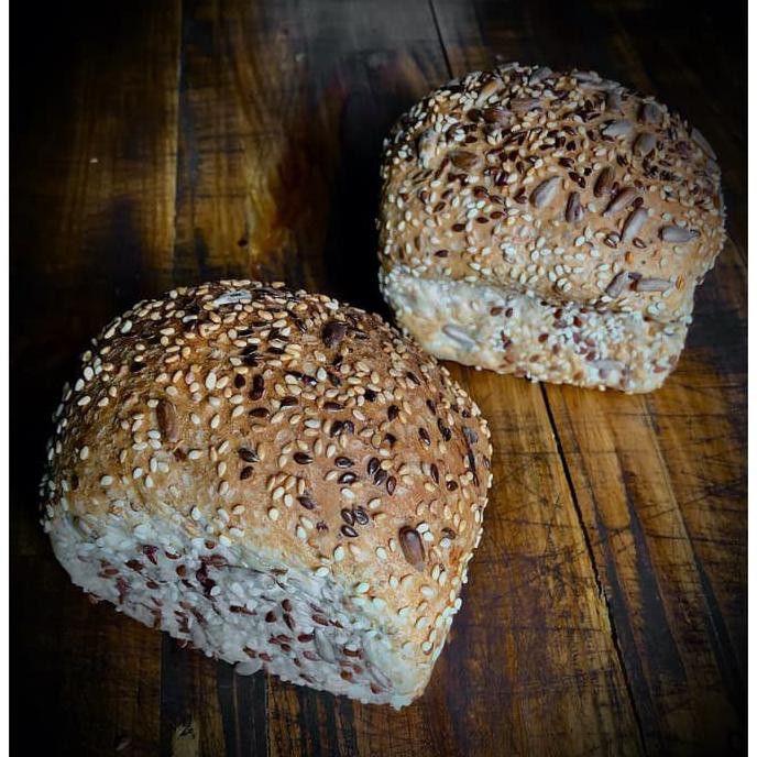Produk ini yang terbuat dari tepung terigu/gandum pilihan yang berkualitas dengan biji2 wijen, bunga matahari, kismis, rami.