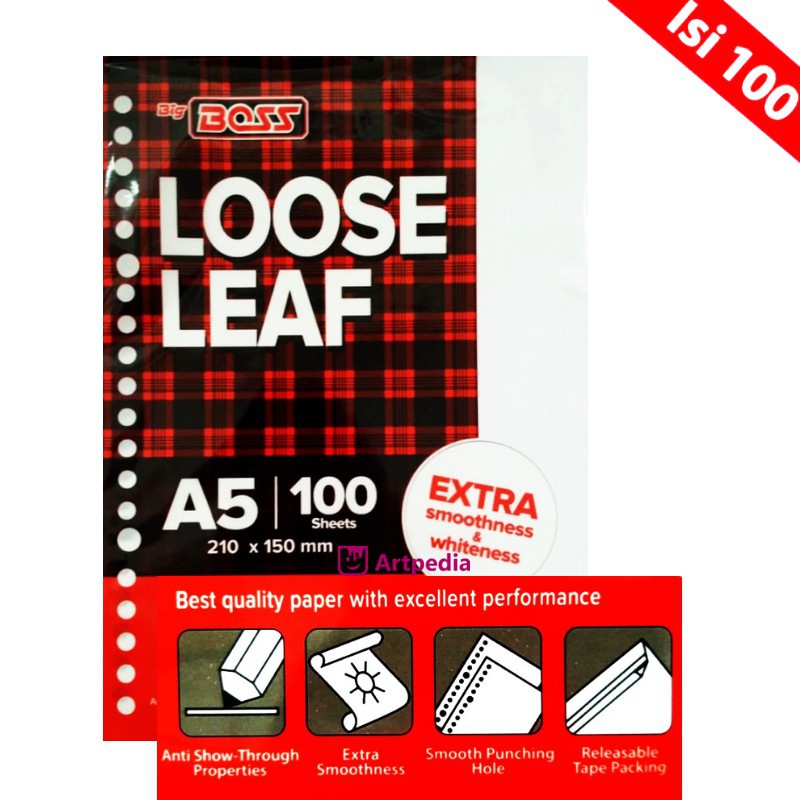 Harga merupakan harga 1 pack BiG BOSS Loose Leaf A5 isi 100 LEMBAR.