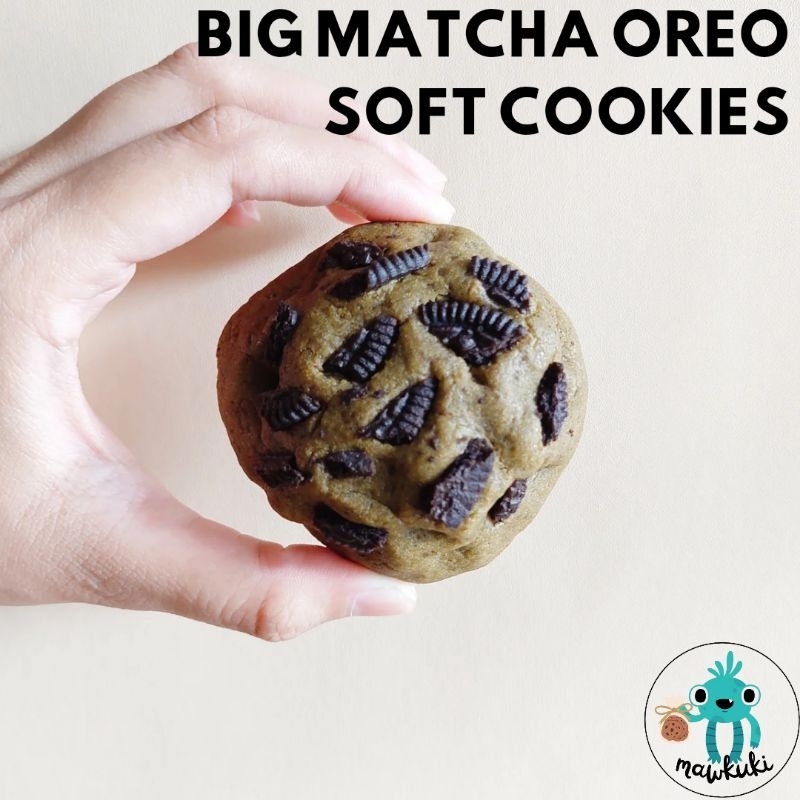 SOFT AND CHEWY MATCHA COOKIE DOUGH WITH COOKIES N CREAM BISCUIT INDISE OUT