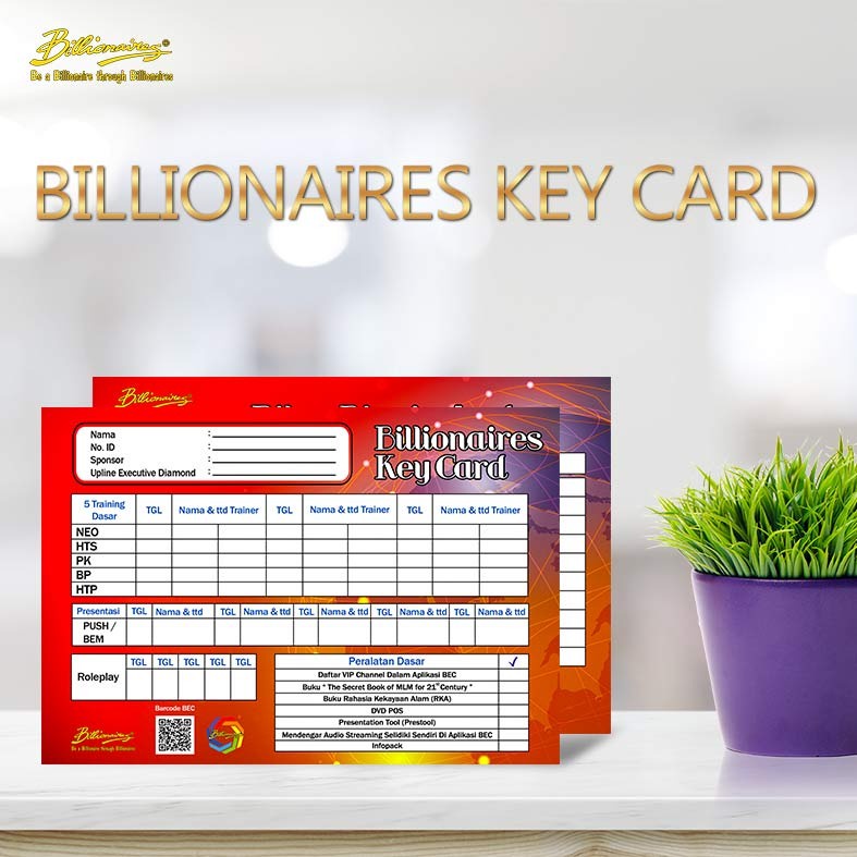 BILLIONAIRES KEY CARD salah satu tools yang harus Anda punyai untuk mengetahui keaktifan rekan kerja Anda dalam mengikuti 5 Training Dasar.