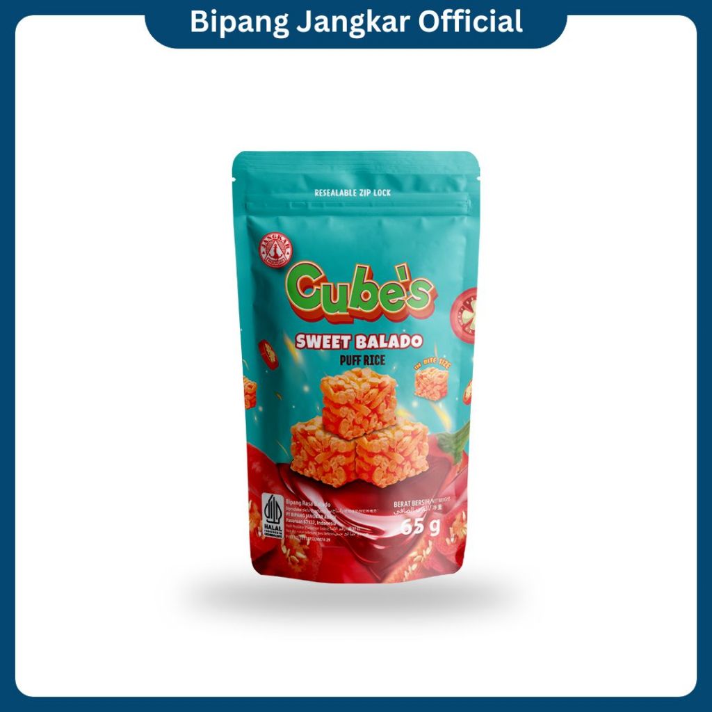 Bipang Cubes Sweet Balado Flavour adalah makanan ringan terbuat dari beras dengan rasa Pedas Manis Balado yang dikemas dalam pouch kemasan ekonomis dengan ukuran yg praktis untuk sekali makan. Pouch dilengkapi dengan ziplock dengan kemasan 65 gr.