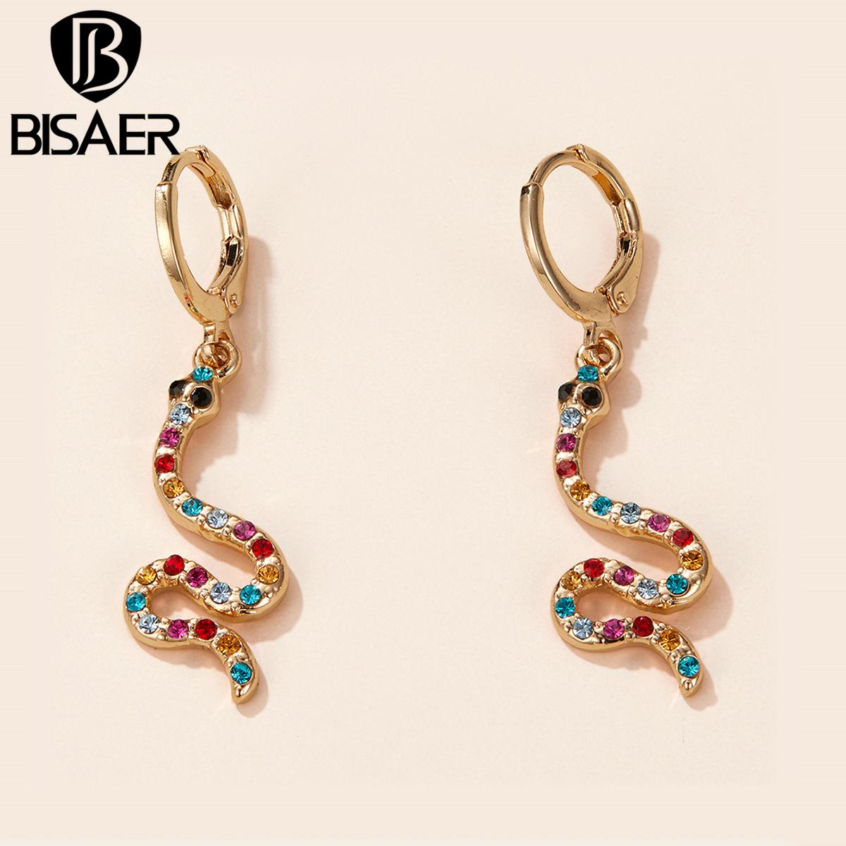 BISAER элегантные блестящие красочные серьги в виде змеи для женщин, модные ювелирные изделия разноцветный