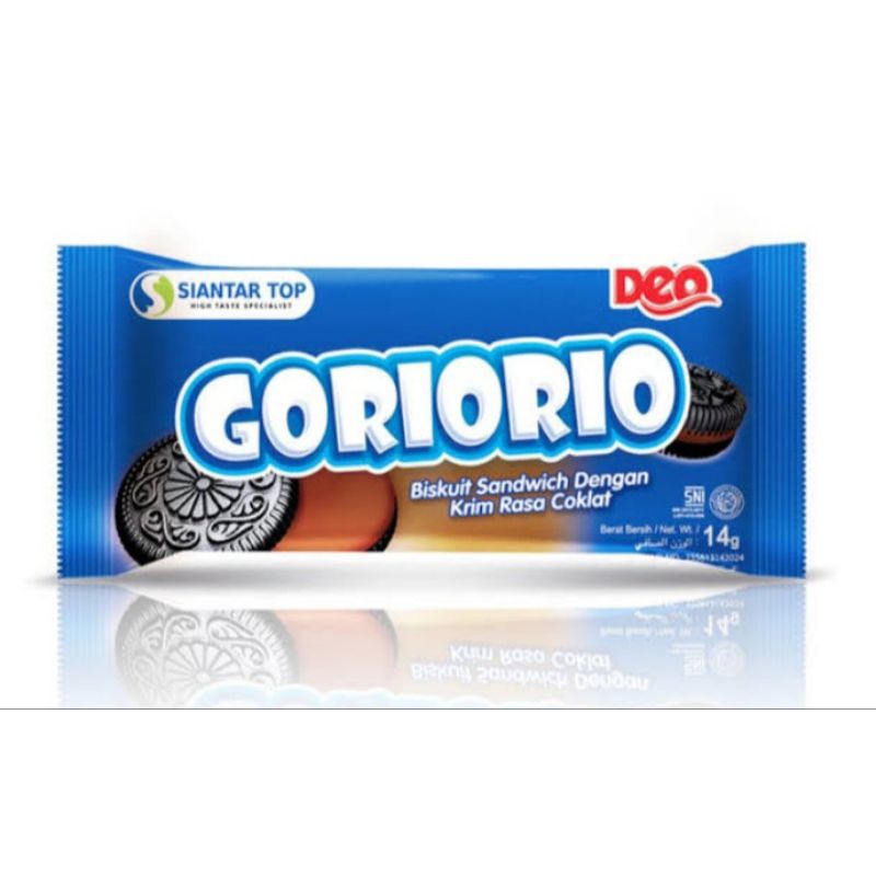 Goriorio merupakan biskuit sandwich krim dengan rasa vanila. Cemilan ini cocok buat bekal sekolah anak, buat bingkisan ulang tahun atau buat ngumpul santai bersama teman atau keluarga.
