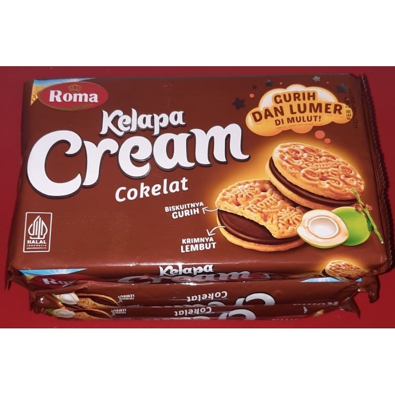 roma biscuit kelapa cream coklat perpaduan gurihnya kelapa dan lembutnya cream cokelat berpadu jadi satu.