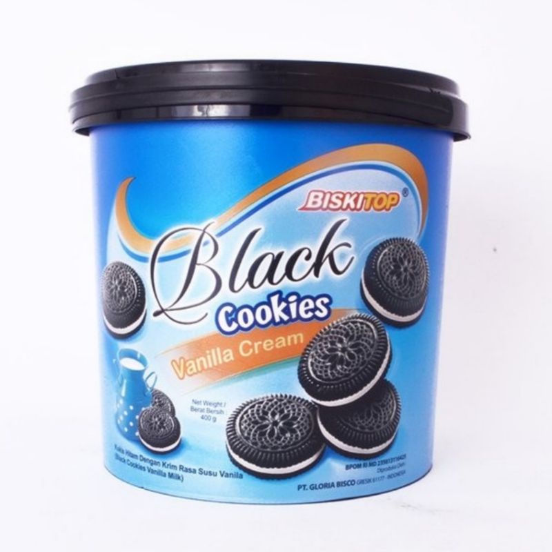 Biskuit kukis hitam dengan krim rasa vanilla yg lezat
