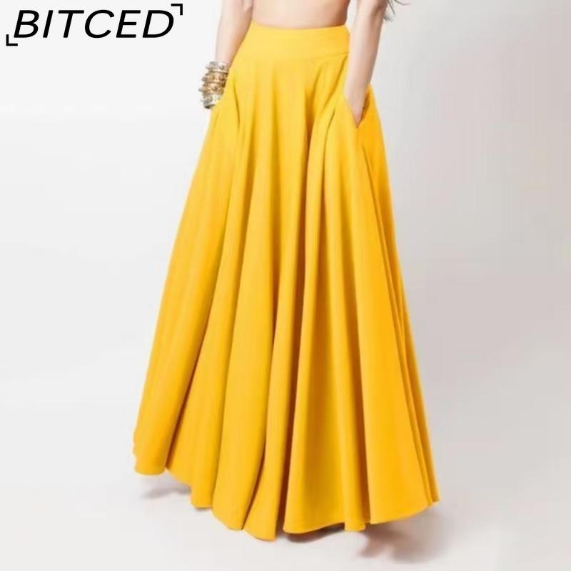 BITCED Женская Мода Повседневная Однотонная С Принтом Летняя Весенняя Юбка XXXL жёлтый