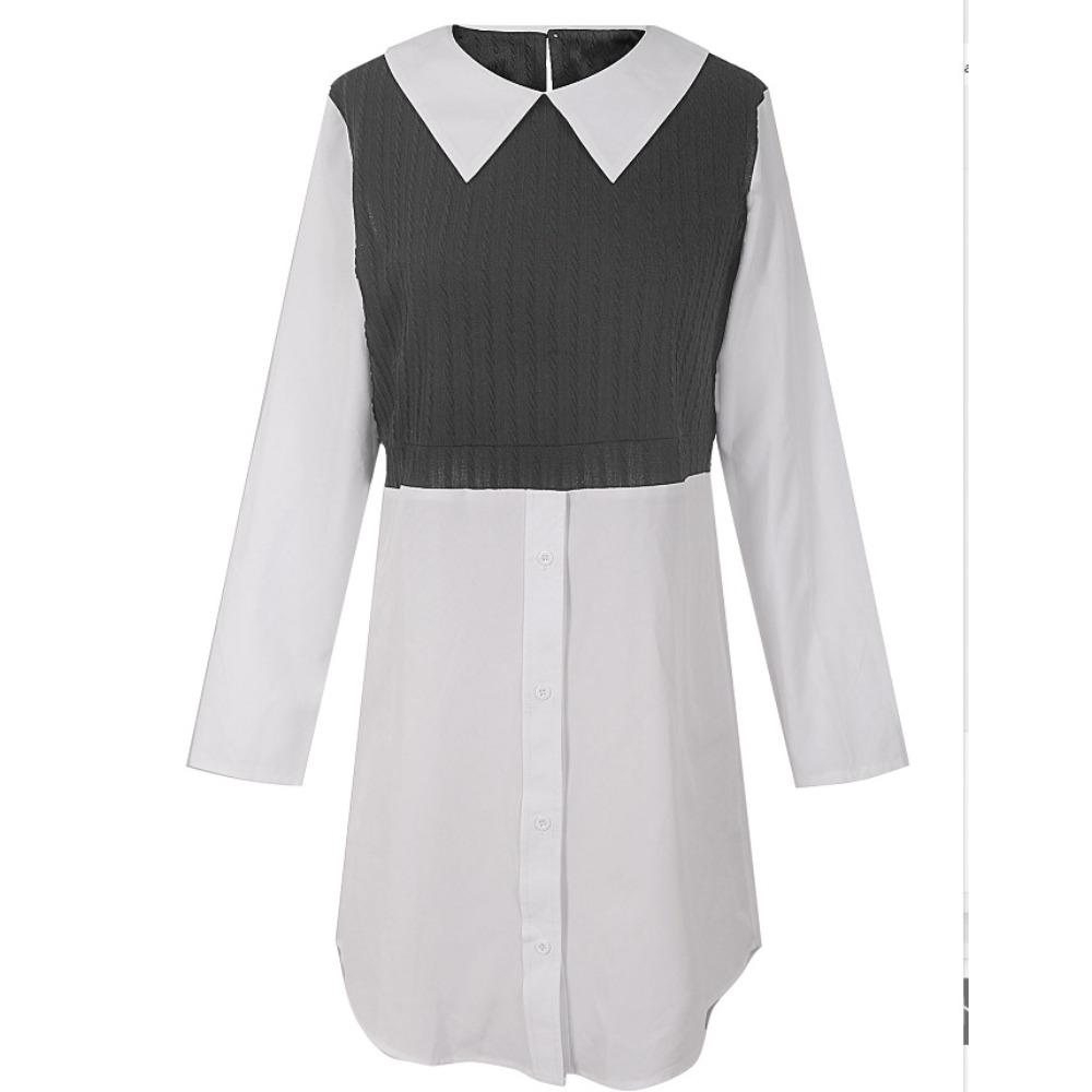 BITCED Женская осенняя простая рубашка с длинным рукавом и V-образным вырезом в стиле пэчворк на пуговицах XXL белый/армия зеленый