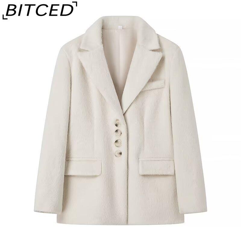 BITCED Модное пальто из шерстяного флиса с большим воротником для женщин весна/осень однобортное с длинным рукавом элегантное пальто XL слоновая кость