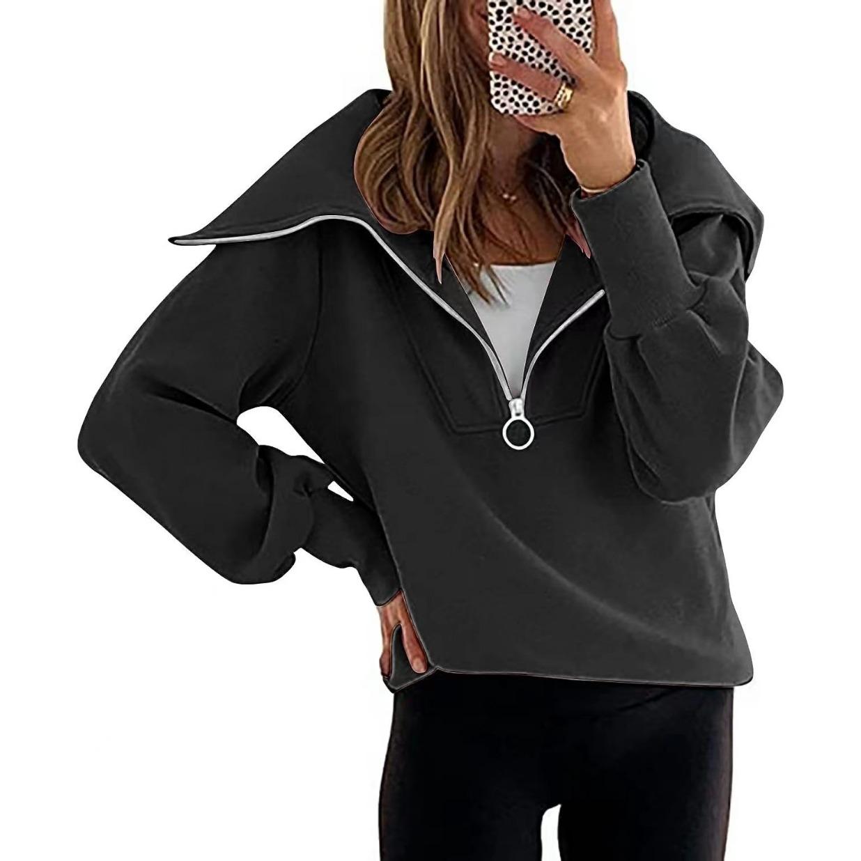 BITCED: женский осенне-зимний объемный пуловер с воротником-молнией и лацканами на плечах XL чёрный