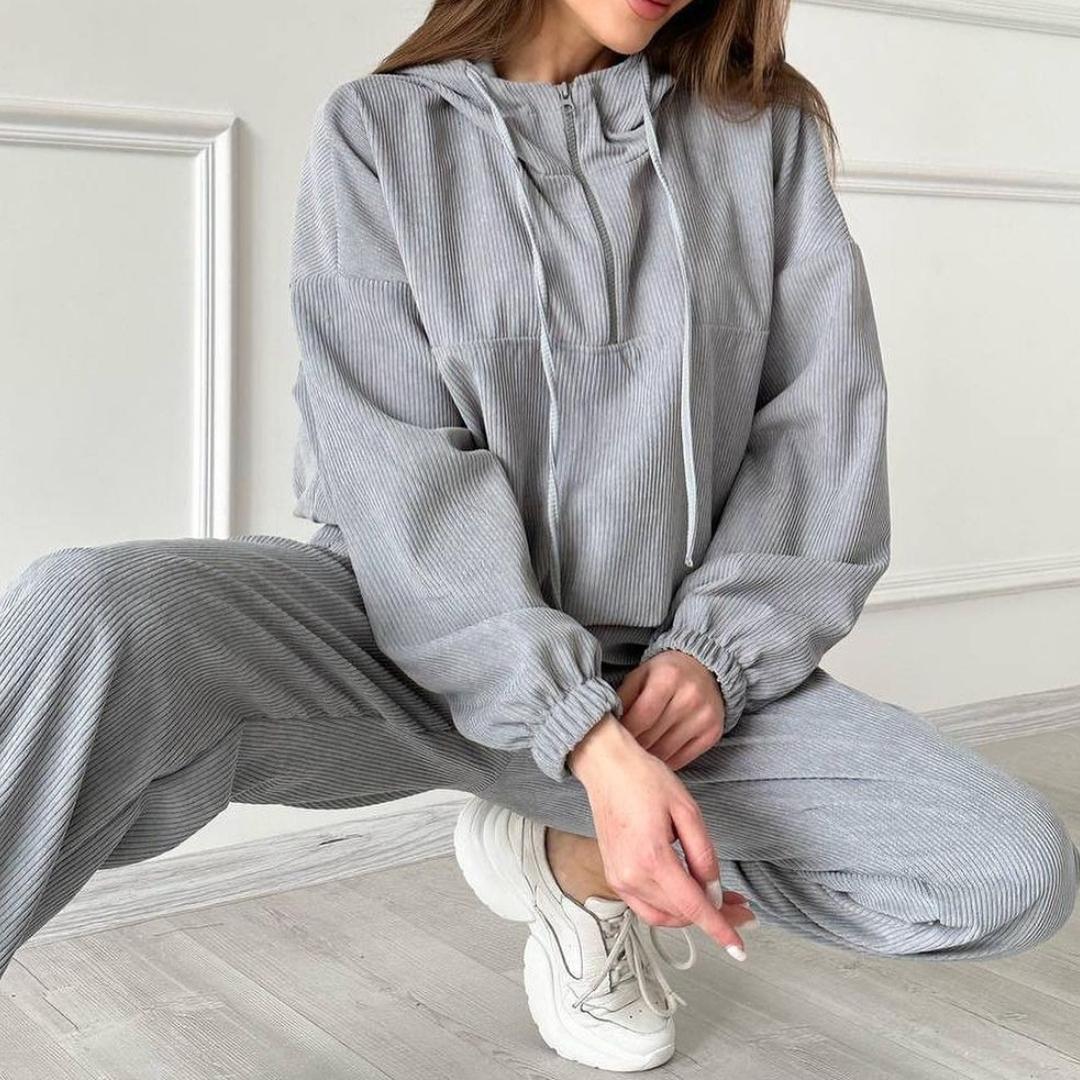 BITCED, новый женский брючный костюм на молнии с длинными рукавами, осень/зима, состоящий из двух предметов XL светло-серый
