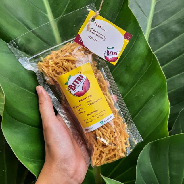 BITRI adalah Keripik Ubi Teri Kekinian yang dibuat dari Ubi Jalar pilihan, ikan teri, cabai, bawang, garam, penyedap rasa, dan tanpa pengawet!