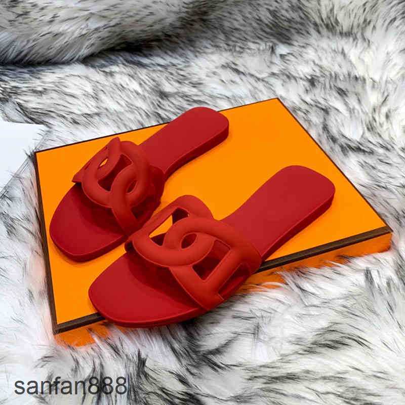 Original Designer Hemres Slippers ladies H Classic 2023woman shoes slippers luxury Summer beach Cartoon Big ead Leather Flat Large size With logo 754V