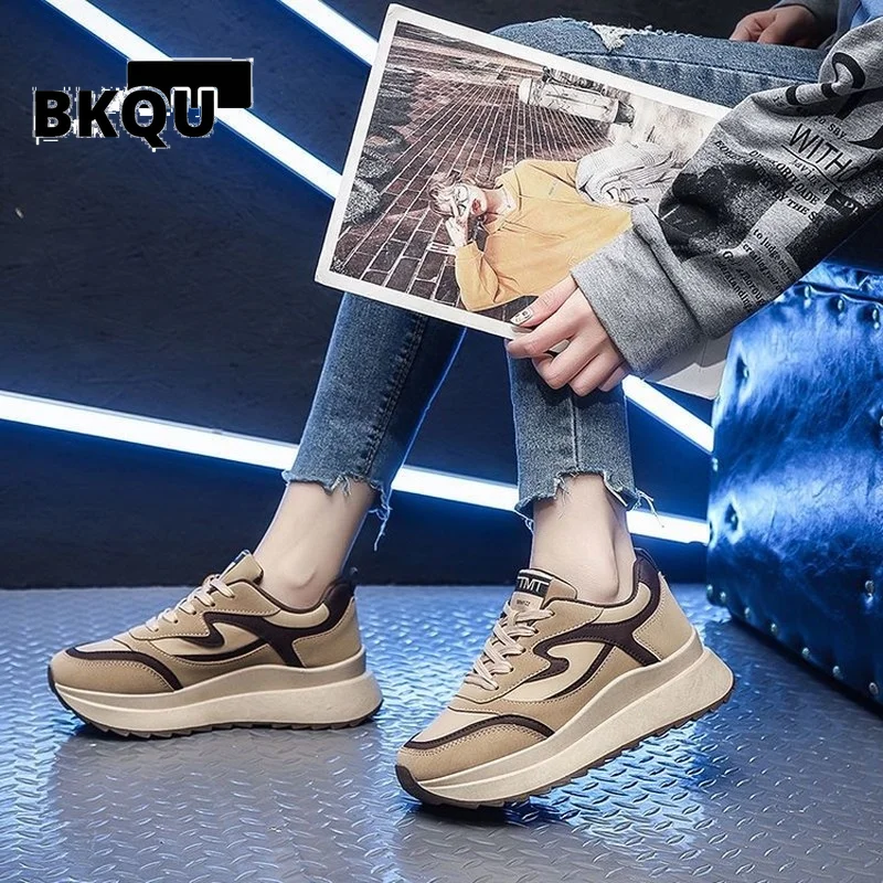 BKQU женские туфли на шнуровке, Дамская обувь на платформе, толстая плоская подошва, дышащая холщовая сетчатая, модная летняя женская обувь 2023
