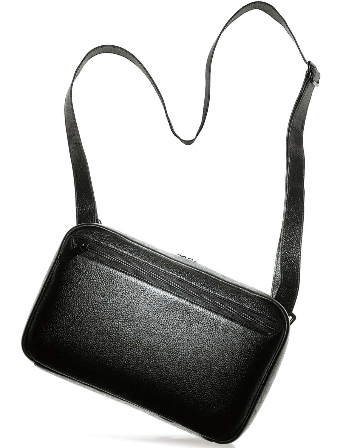 [BLUE SINCERE] Мужская наплечная сумка, натуральная кожа, широко открывается, большая вместимость, через плечо, на одно плечо, сакош, кожаная сумка, SHB12 (Королевский черный)