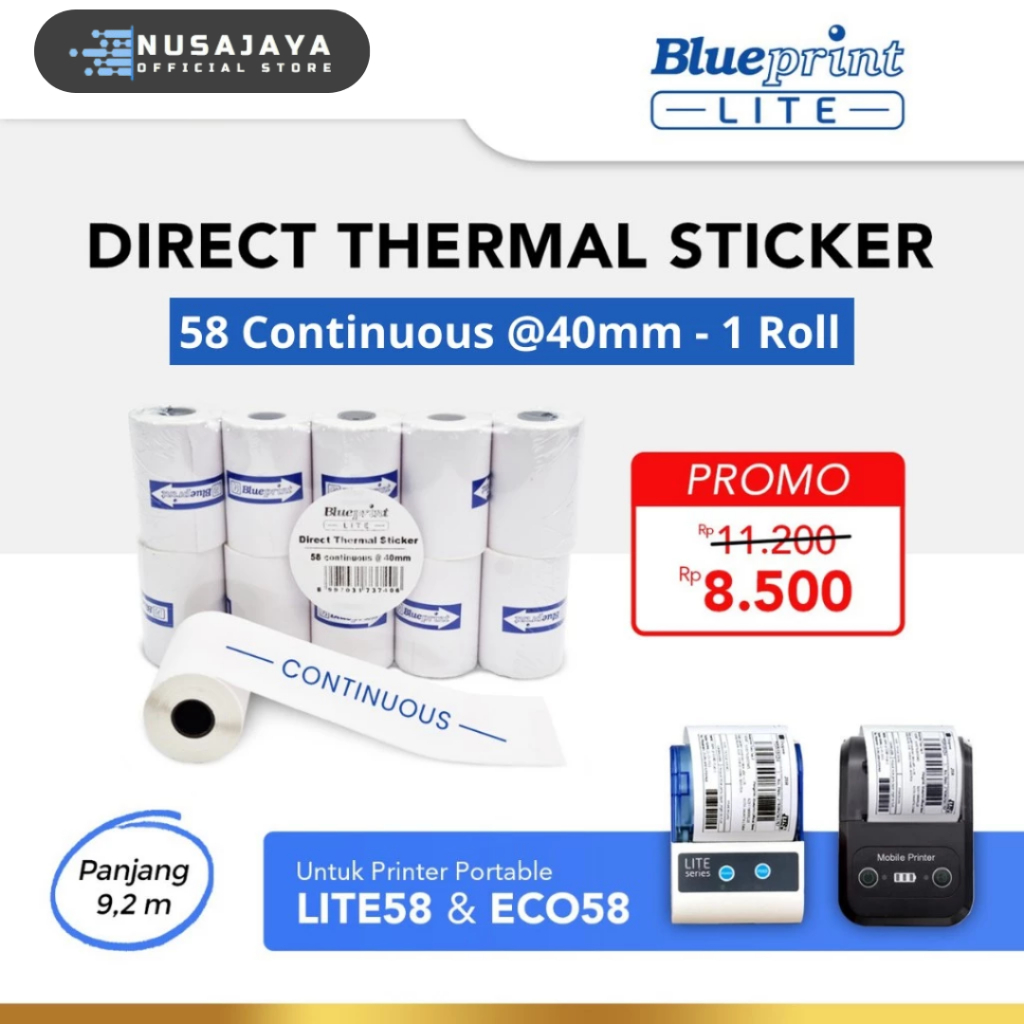 BLUEPRINT LITE - Direct Thermal Sticker / Label 58 mm Continuous @40mm