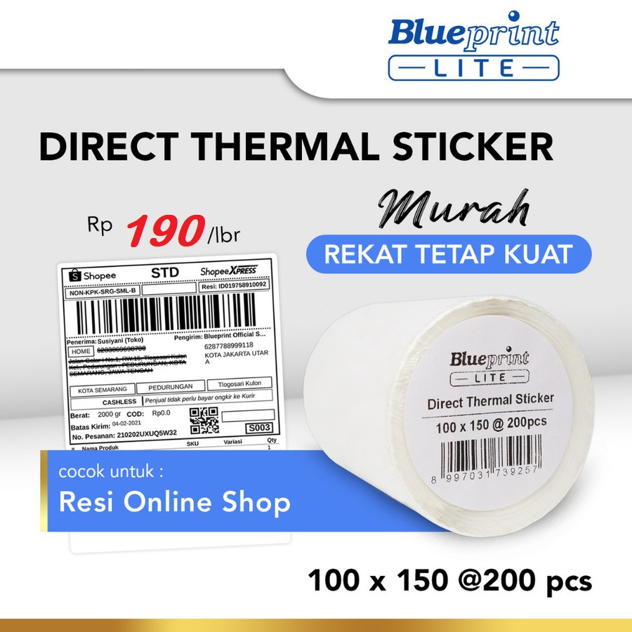 BLUEPRINT LITE - Direct Thermal Sticker / Label Stiker 100x150 - 200pc