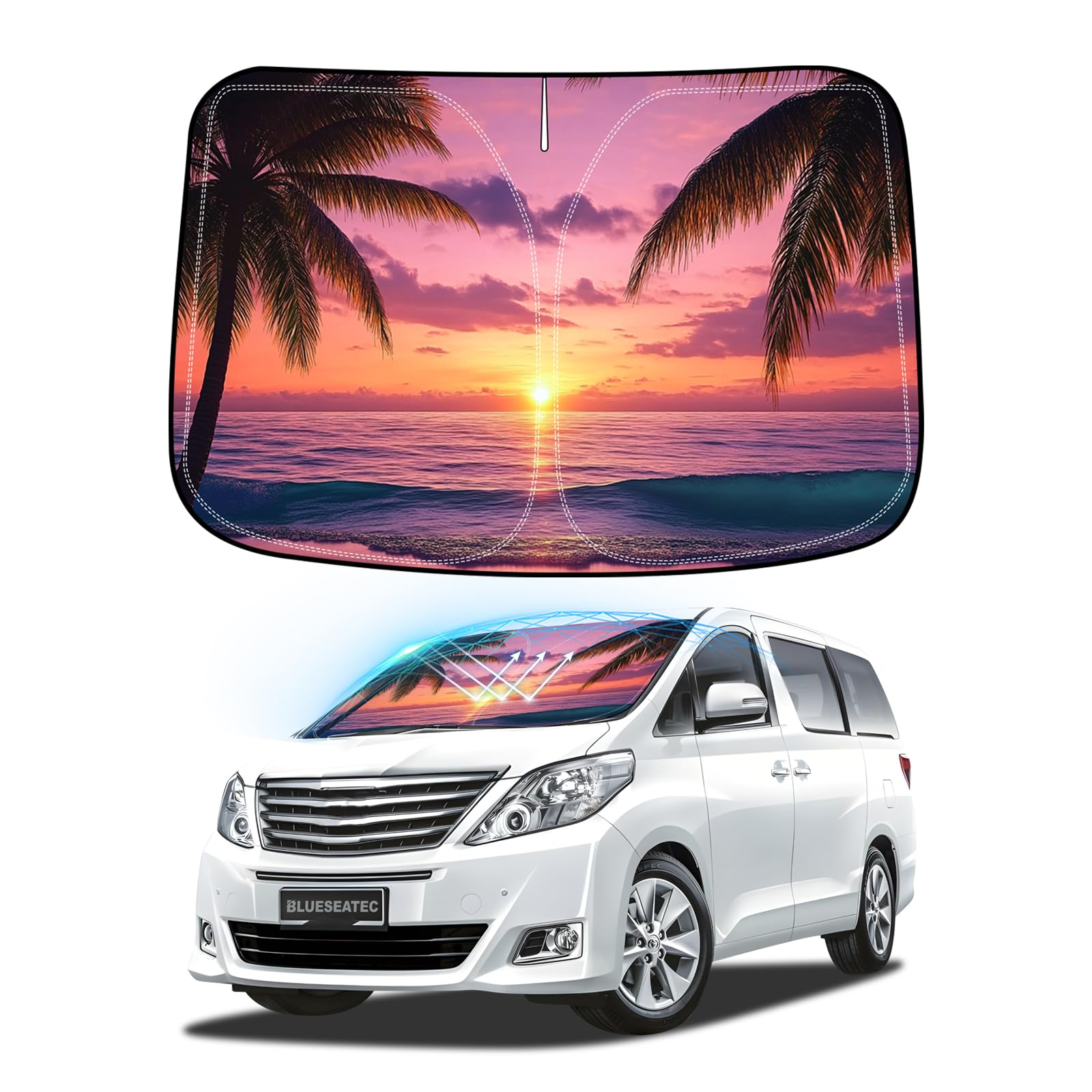 BLUESEATEC Toyota Alphard 20 Серия Vellfire 20 Серия Совместимый Солнцезащитный козырек на лобовое стекло Защита от УФ-лучей Не требуются присоски Сон в машине синий